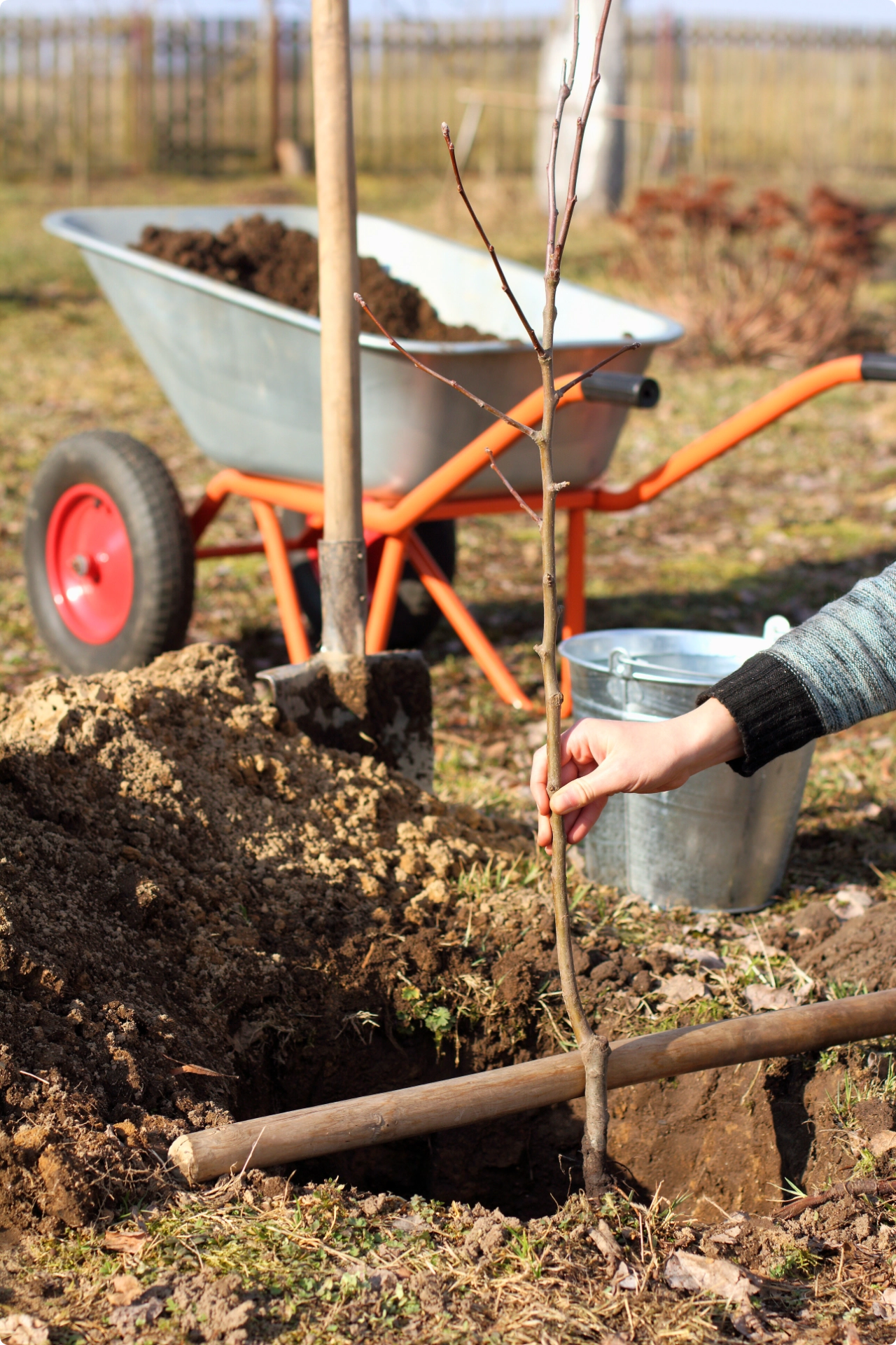 Vyberete si z nabídky odrůd na stránkách ovocné školky, případně Vám poradím s vhodnou výškou stromu, odrůdou atd. Stromy poté nakoupím, přivezu k Vám a správně zasadím tak, aby se dobře ujaly tzn. výběr vhodného stanoviště, dostatečně velká jáma a spony mezi stromy, ukotvení 2m impregnovanými kůly, mulč v podobě 50cm kokosového disku, hnojivo, zálivka, 150cm svařené železné pletivo proti srnkám, 50cm králičí pletivo proti zajícům, povýsadbový řez.